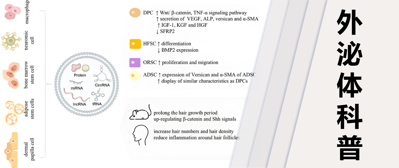 近年来,脱发问题受到广泛关注。鉴于脱发的高患病率及其对人体身心健康的显著影响,开发有效的治疗方法显得尤为迫切。随着外泌体在多个医学领域均展现出强大的应用潜力,利用外泌体改善脱发自然成为了研究的一大热点。