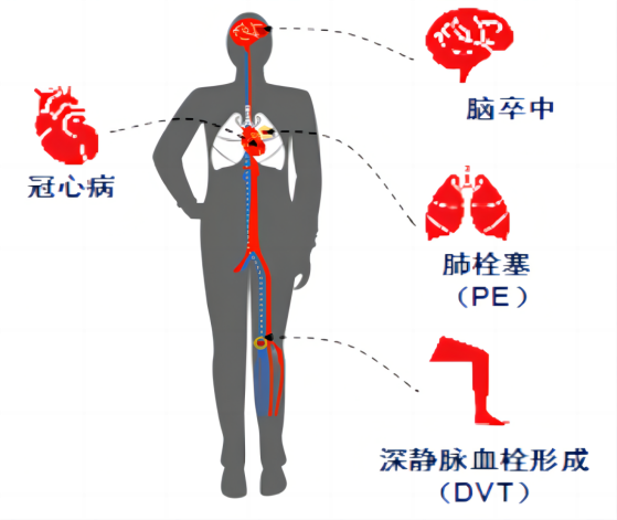 血栓发生在动脉,可能导致相应组织或器官缺血缺氧,引发心肌梗死或脑梗死;发生在静脉,则会影响血液回流,如下肢深静脉血栓,甚至引发肺栓塞。血栓是心肌梗死、脑卒中及静脉血栓栓塞症的共同病理基础,具有高发病率、高致残率、高复发率及高死亡率的特点,严重威胁人类健康。