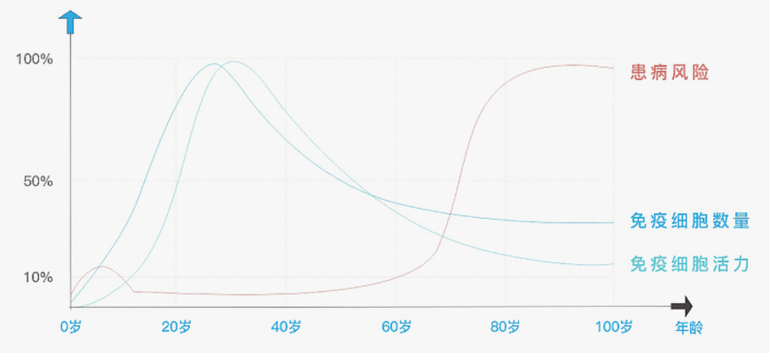 研究表明,人类90%以上的疾病与免疫细胞的衰老有关。只有免疫细胞数量充足、质量优良、保持年轻活力,才能有效抵御疾病。然而随着年龄增长,免疫细胞的数量和活性逐渐下降,识别和清除异常细胞的能力也随之减弱。