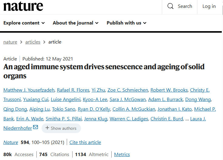 2021年5月,美国明尼苏达大学的研究人员在《自然》杂志上发表了一项重要研究,指出:免疫系统的年轻程度直接影响整体免疫力;免疫细胞衰老会引发全身性衰老,而移植年轻的免疫细胞则可能延缓衰老进程。