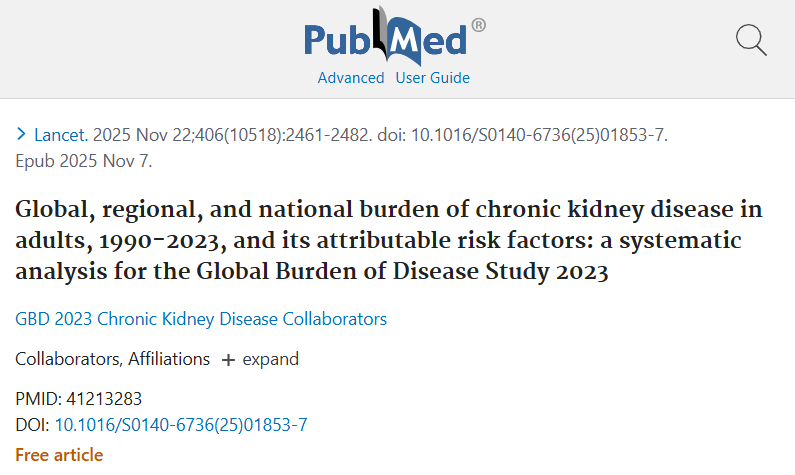 2025年11月22日,国际权威医学期刊《柳叶刀》发布了《全球疾病负担研究2023》中关于成人慢性肾脏病(CKD)的系统分析。该研究整合了1990年至2023年间全球204个国家和地区、20岁及以上成年人的健康数据,来源涵盖已发表的研究报告、生命登记系统、肾脏替代治疗登记及家庭健康调查等,揭示出一系列令人警醒的趋势。