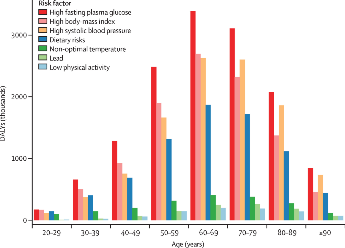 该研究进一步明确了导致慢性肾病健康损失的主要危险因素。前五位分别是:空腹血糖升高(贡献31.9%)、收缩压升高(24.5%)、体重指数升高(23.5%)、不良饮食习惯(17.6%)以及非适宜气温(4.4%)。这些因素共同加剧了因慢性肾病导致的伤残调整寿命年负担。