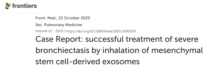 中国中医科学院广安门医院呼吸科在学术期刊《Frontiers in Medicine》上发表了案例研究,一名53岁严重支气管扩张患者经外泌体雾化干预后,血氧情况改善,临床症状减轻,提示该疗法可能有助于提升患者的生活质量与预后。