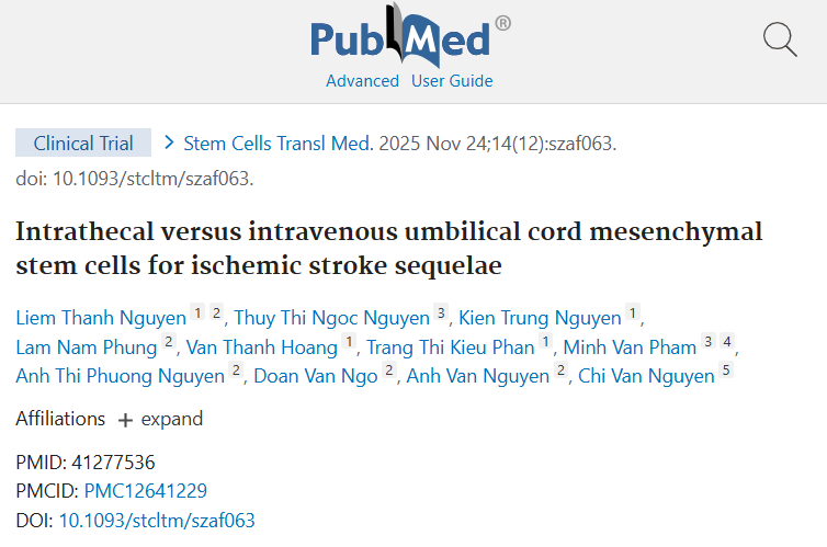 2025年11月24日,国际行业期刊《Stem Cells Translational Medicine》发表了一项二期随机对照试验,专门比较了两种干细胞应用方式——静脉注射与椎管内注射(即将干细胞注射到脊髓周围的蛛网膜下腔,使其更易到达中枢神经系统)——治疗缺血性脑卒中后遗症的安全性与有效性。
