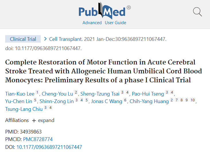 中国台湾花莲慈济大学医学院报道了一个令人振奋的案例:一名缺血性脑卒中偏瘫患者在接受干细胞干预后,在12个月内取得了完全康复,这一结果发表在《Cell Transplantation》(细胞移植)期刊上。